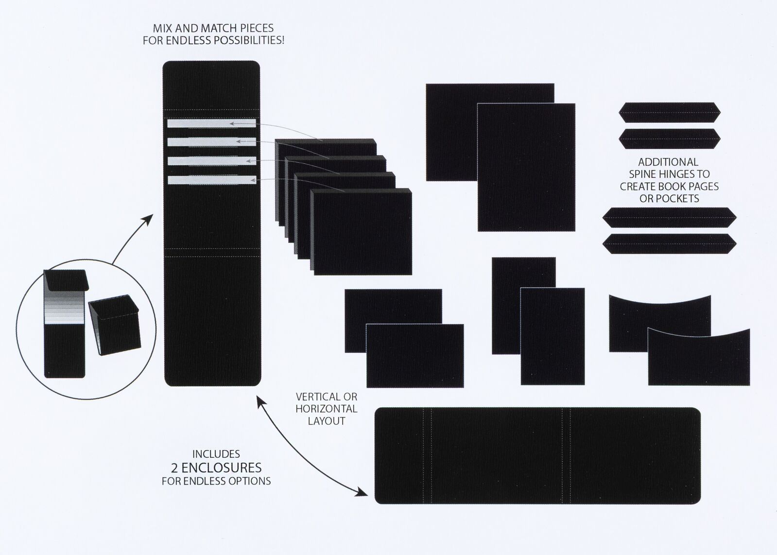 "Add a new dimension of fun and surprise to your scrapbooking projects and mini albums with the Create-An-Album Assortment #1. This essential set of interactive flips and flaps is designed to bring your memories to life, creating a truly unique and engaging book for anyone who flips through it. Easily integrate these mix and match elements into your pages to add extra photo mats, hidden journaling spots, or unexpected pop-up features. They are perfectly sized and engineered to work seamlessly with the Create-An-Album covers and spine systems, ensuring a professional and cohesive finish for every album you build."