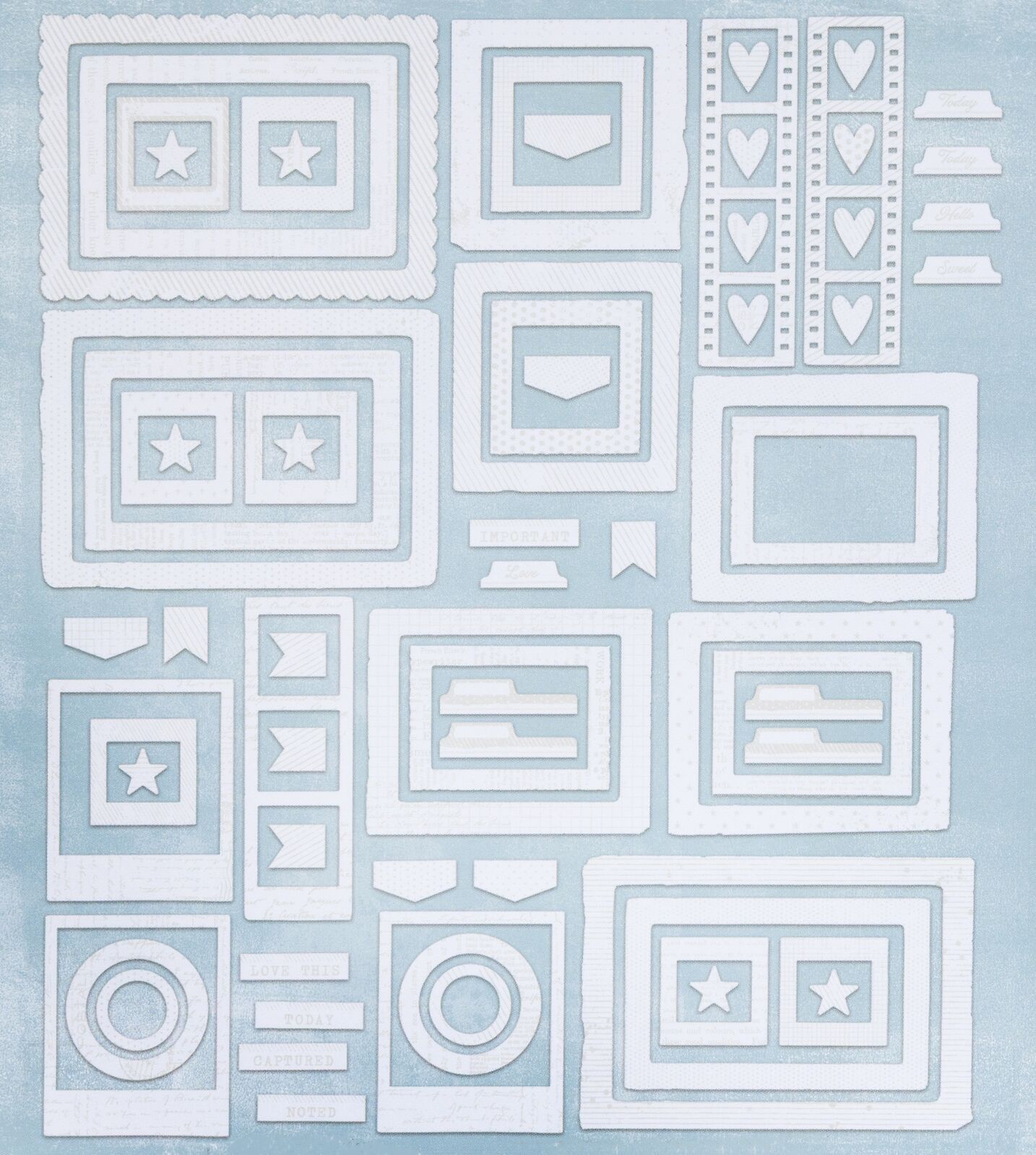 "Unlock a world of hidden details with our Irresistible Die-Cut Frames. These aren't your average paper accentsthey are designed with a specialized ""resist"" coating that allows you to become the artist. At first glance, they appear as elegant, clean white shapes, but a secret pattern is waiting to be discovered.The Magic of the ""Resist"" EffectEach frame features a clear, embossed pattern that acts as a barrier. When you apply color over the top, the ink slides off the treated areas and sinks into the paper around them. The result? A stunning, professional-looking design that pops with high-contrast detail.How to Use ThemInk Blending: Use a blending tool and your favorite dye inks. Sweep the color across the frame to watch the intricate patternslike swirls, text, or geometric linesmagically appear.Water coloring: Brush on watercolor paints or water-reactive markers. The resist coating keeps the patterns crisp and white while the colors bleed and blend beautifully in the open spaces.Mixed Media: Experiment with other paints and mediums. After applying your medium, simply wipe the surface with a dry cloth to ""reveal"" the bright white pattern underneath."