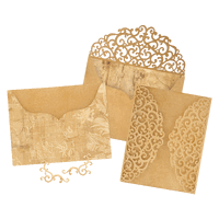 - Ornate Gatefold Card 4.25 x 5.5 in; can be trimmed to 4 x 5.25 in, to fit inside the decorative envelope