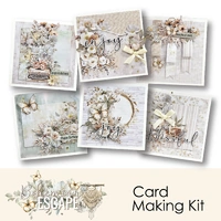 Everything you need to make 6 cards with envelopes and there will be lots of left overs to make many more, all you need extra is glue and scissors :). The Kits come with full size colour images of the cards to make